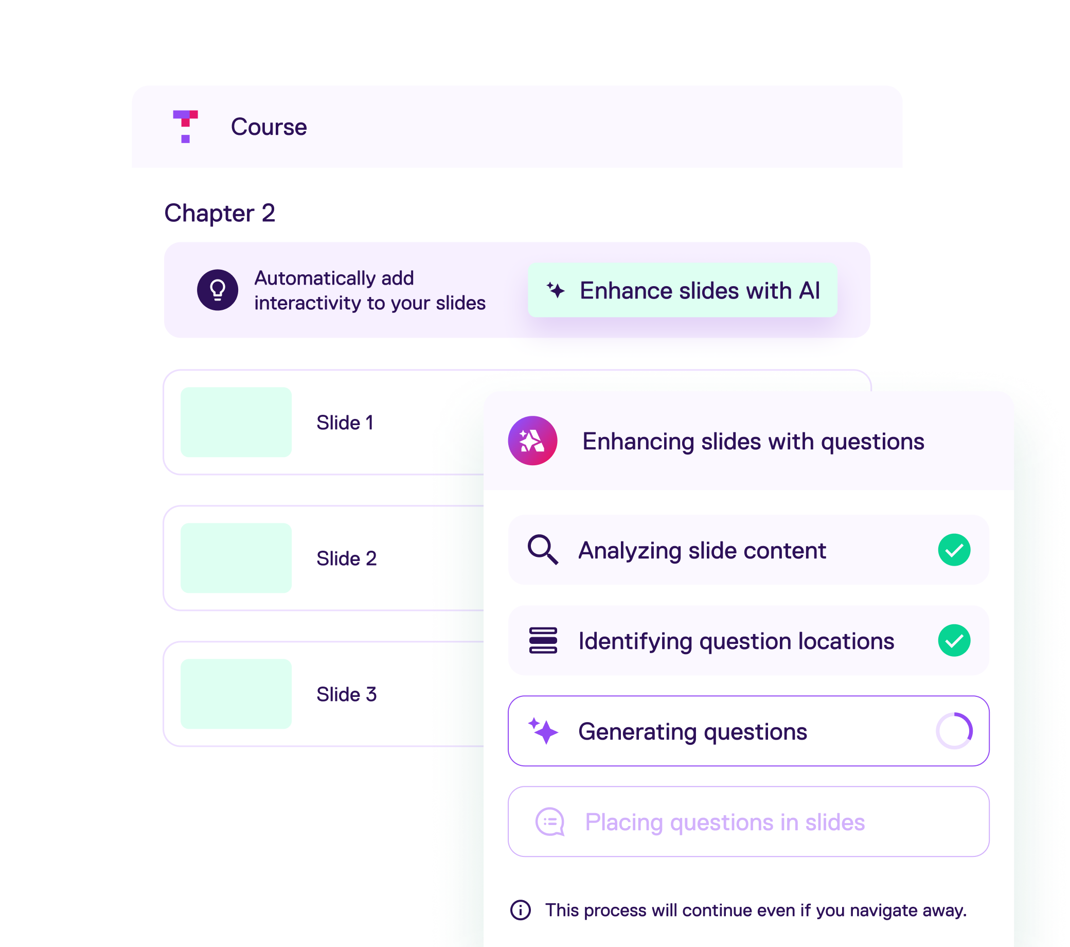 1. Generate formative assessment questions and discussion prompts directly from your uploaded slides