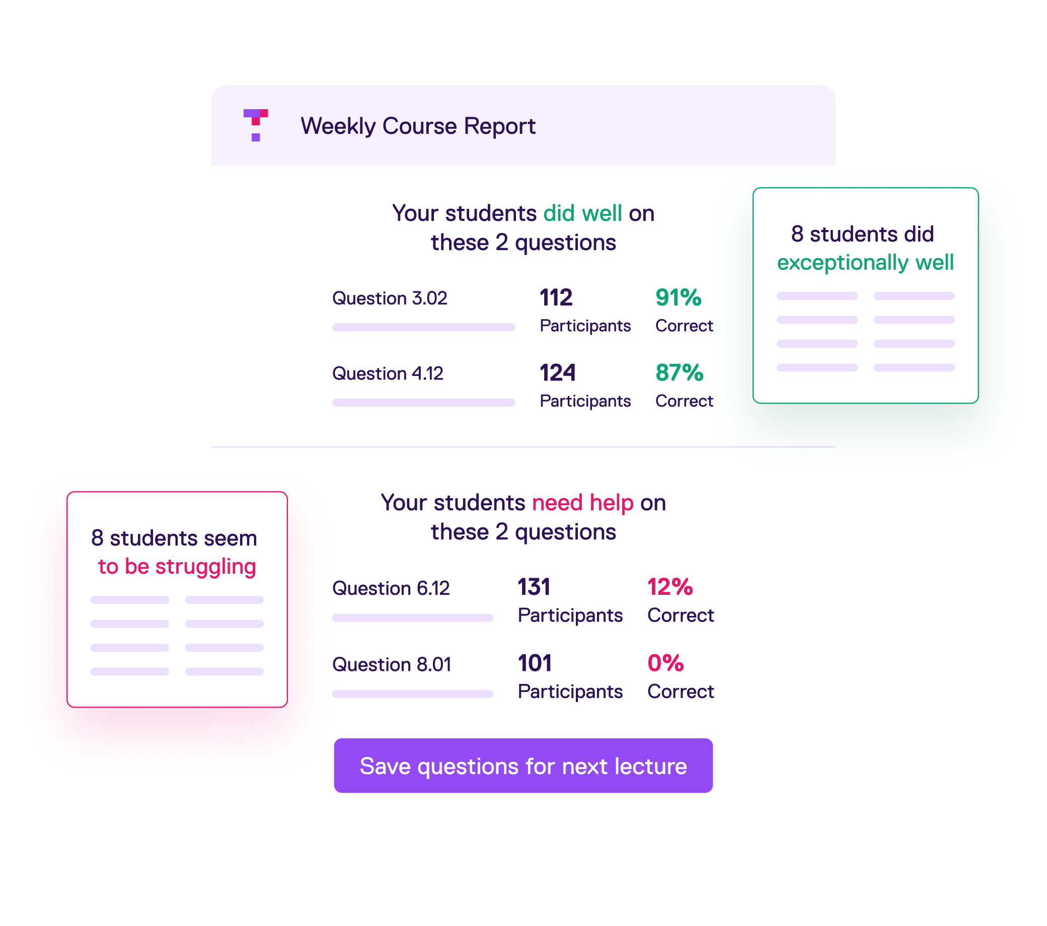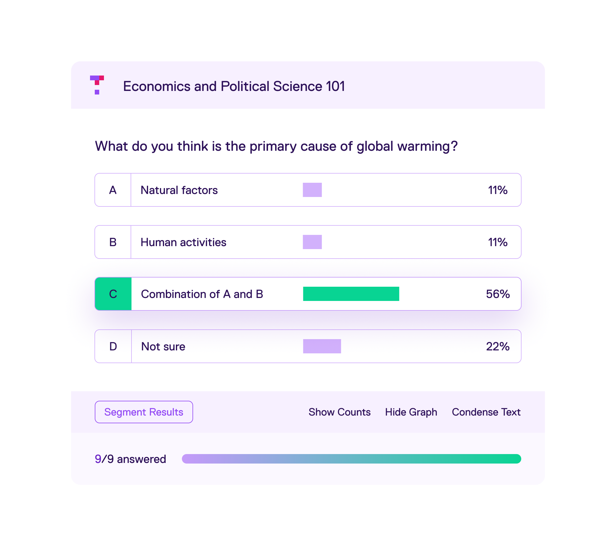 Live polling tools collect quick responses, whereas Top Hat’s comprehensive student engagement and interactive learning platform supports deeper learning across the full course experience. Beyond live questions, Top Hat offers interactive college textbooks, real-time insights, class attendance and AI-powered study aids. It’s a complete engagement platform built on learning science—not just an in-class live polling tool.