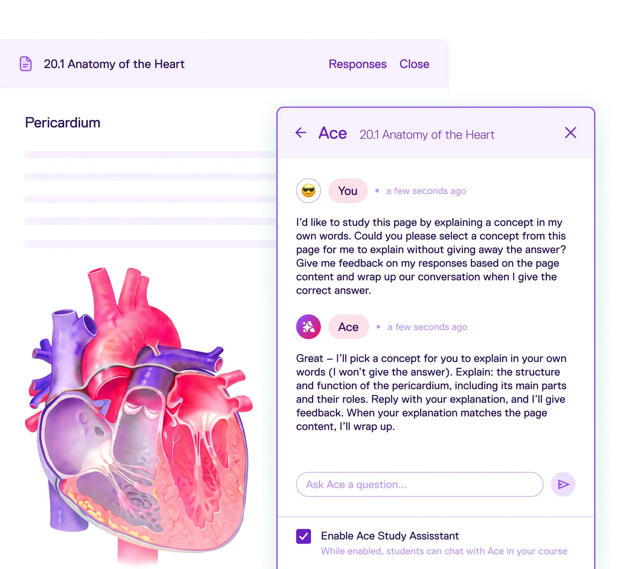 Top Hat’s AI-powered assistant, Ace, provides on-demand study support and unlimited practice opportunities to students—all grounded in your course content.